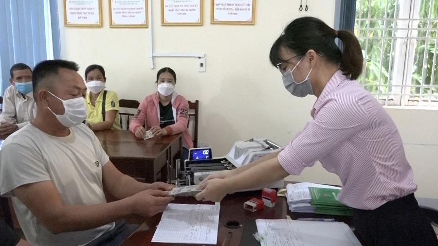 | Phòng giao dịch Ngân hàng Chính sách xã hội huyện Ea Súp giải ngân cho vay theo Nghị định 28. |