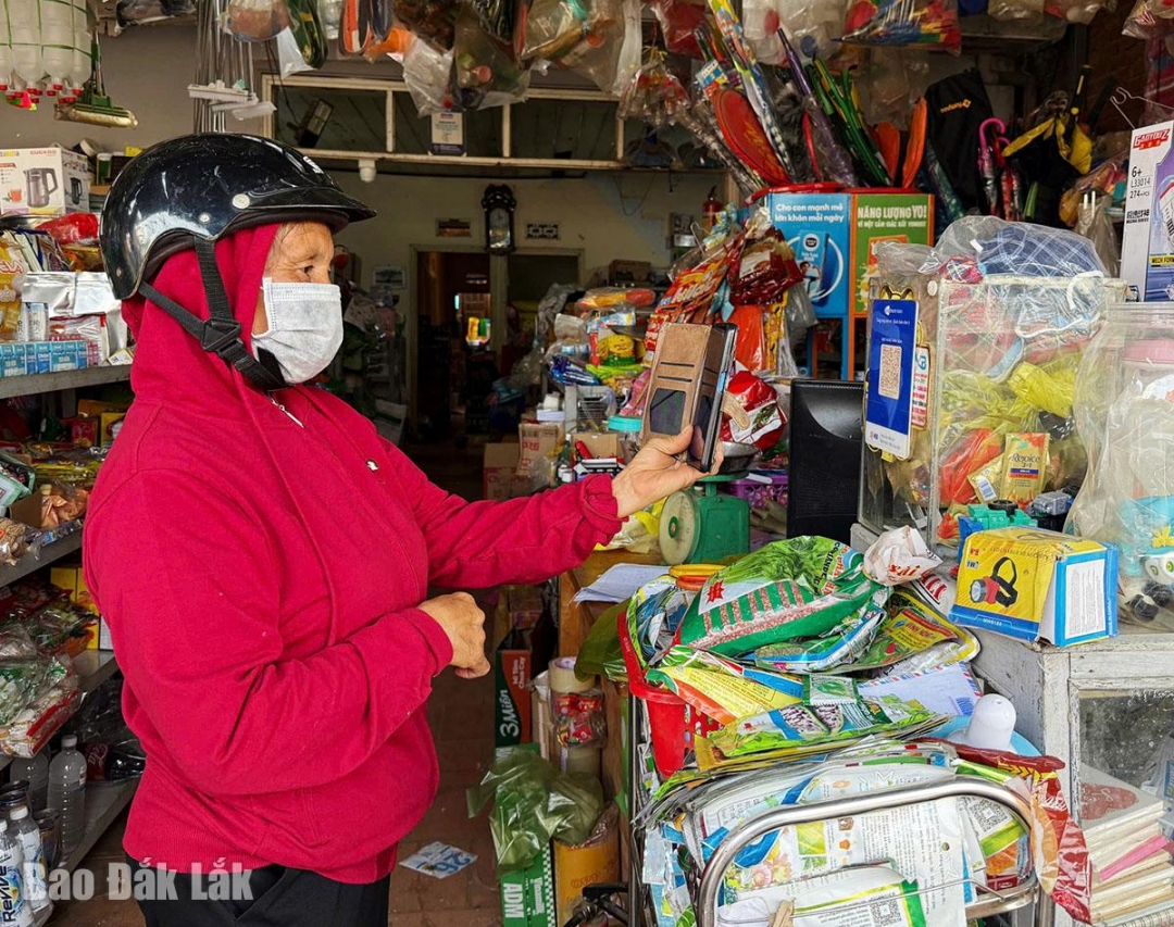 Không chỉ hỗ trợ trong quản lý giấy tờ và tiếp cận thông tin, việc áp dụng công nghệ số còn lan tỏa đến nhiều hoạt động kinh tế của người dân. Tại buôn Phi Dih Ja B, chị Nguyễn Thị Kim Loan, chủ tiệm tạp hóa Năm Ny là một trong những hộ tiên phong sử dụng thanh toán không dùng tiền mặt. Chị Kim Loan cho biết: "Ban đầu ở buôn ít người biết dùng, nhưng nhờ Internet phát triển, bình quân cứ 10 người mua hàng thì cũng có 2 - 3 người thanh toán qua mã QR. Tôi tin thời gian tới người dân vùng sâu cũng sẽ sử dụng nhiều hơn".