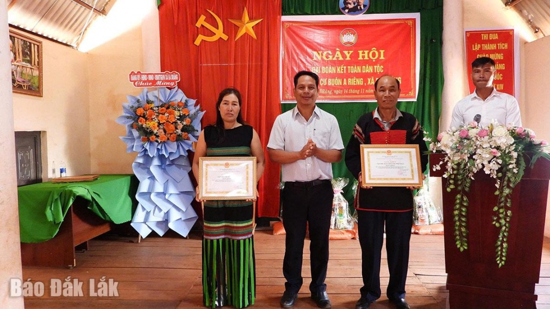 Ông Ksơr Y Giáp được tuyên dương về thành tích xuất sắc trong phong trào Toàn dân đoàn kết xây dựng đời sống văn hóa năm 2025. |