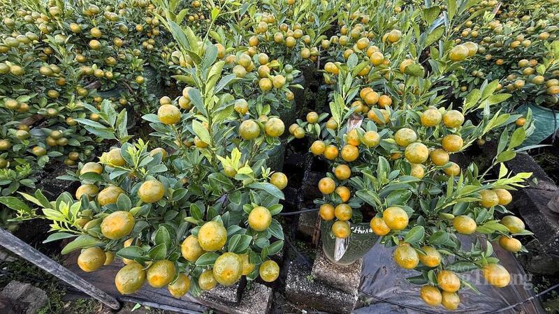 Những chậu quất cảnh sai quả, tán đều được người dân xã Mễ Sở (tỉnh Hưng Yên) tập trung chăm sóc, chỉnh sửa để đạt mẫu mã đẹp nhất trước khi xuất bán dịp Tết.