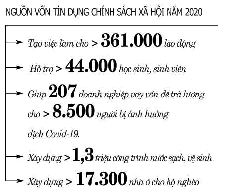 "Đặc biệt, năm 2020, trong bối cảnh dịch Covid-19 diễn biến phức tạp, Ngân hàng CSXH nỗ lực để hỗ trợ doanh nghiệp, người dân bị ảnh hưởng bởi dịch Covid-19 và thực hiện phương án đảm bảo hoạt động liên tục của ngân hàng trong suốt giai đoạn dịch bệnh.