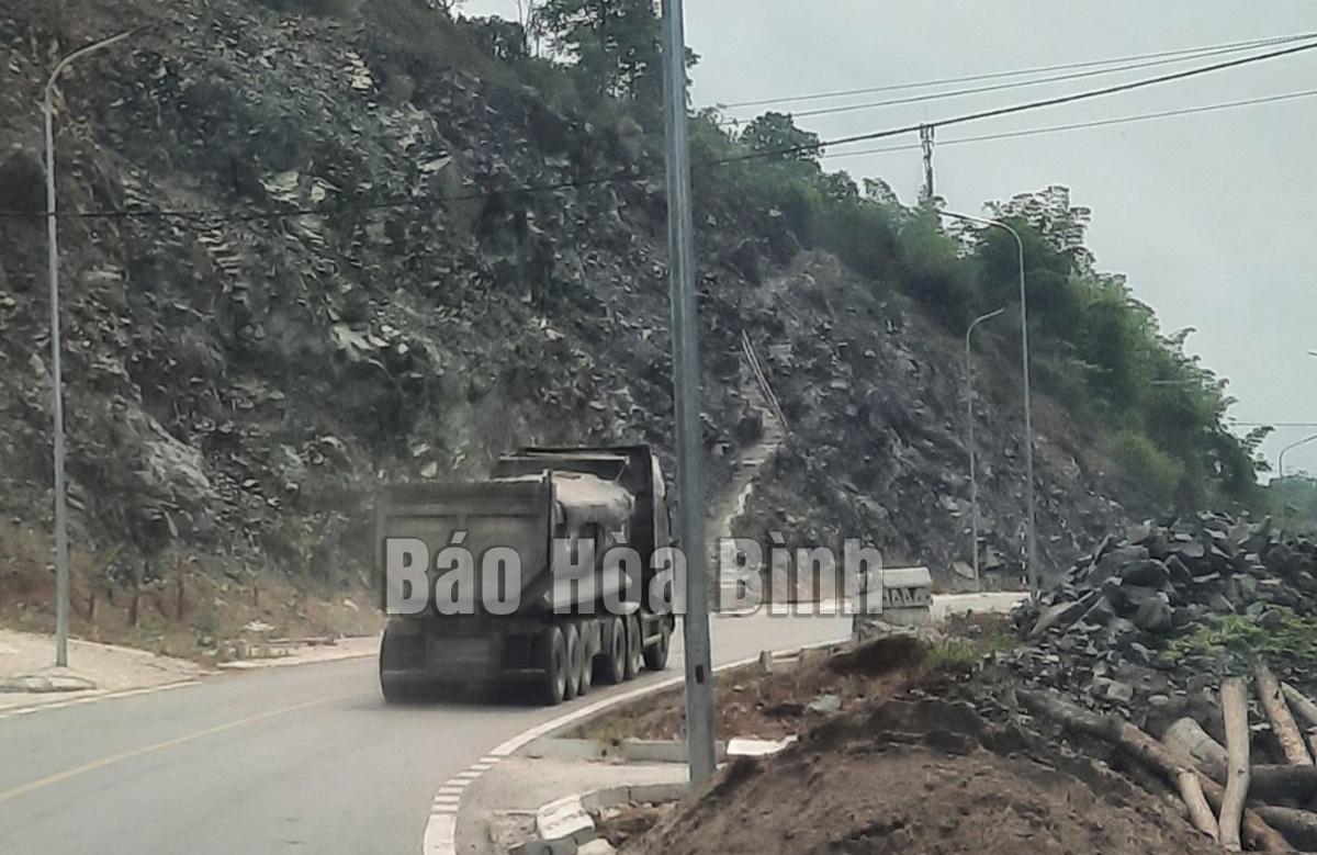 Cục thuế kiến nghị các ngành chức năng tăng cường phối hợp quản lý hoạt động khai thác khoảng sản. Ảnh: Xe vận chuyển đất đá trên tuyến đường 435, thành phố Hoà Bình