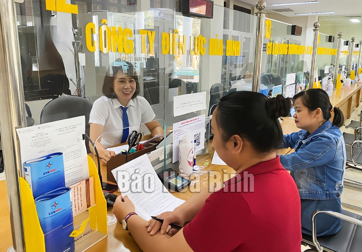 Cán bộ, công nhân viên Công ty Điện lực Hòa Bình nêu cao tinh thần phục vụ, hướng tới sự hài lòng của khách hàng.