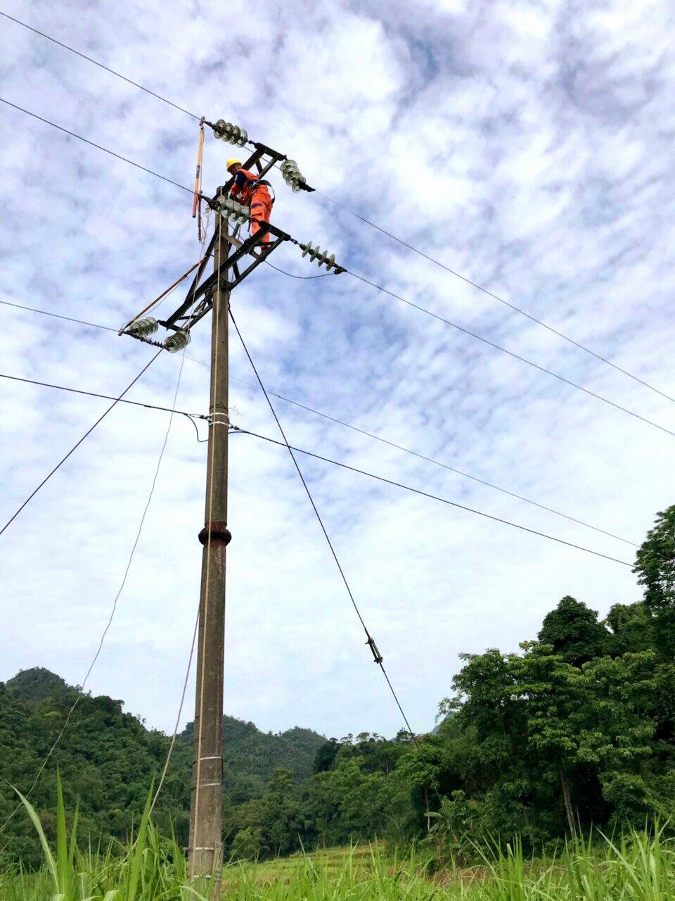 Công nhân PC Hòa Bình xử lý đường dây, các điểm xung yếu để đảm bảo cung cấp điện ổn định, an toàn trong dịp Tết Nguyên đán Tân Sửu 2021.