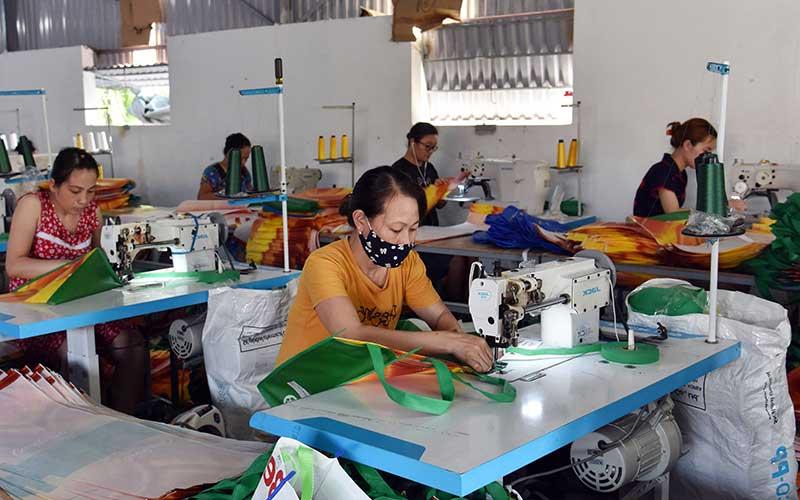 May túi xuất khẩu tại Công ty Huyền Bính ở xã Xuân Tân, huyện Xuân Trường, Nam Định. (Ảnh TRẦN QUỐC)