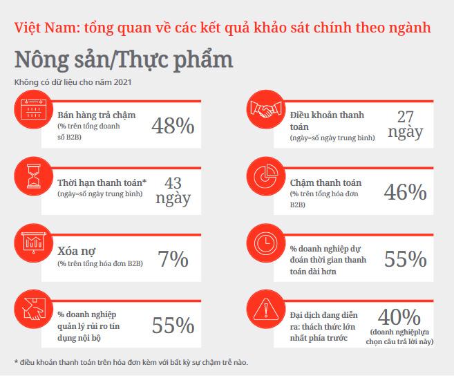 Khảo sát mới nhất của Atradius, đơn vị đứng thứ hai toàn cầu về thị phần các dịch vụ bảo hiểm tín dụng, bảo lãnh và thu hộ cho thấy, các doanh nghiệp Việt Nam đang phải đối mặt với tình trạng thắt chặt thanh khoản do nợ khó đòi B2B và nợ xấu. Cụ thể, 48% tổng giá trị doanh số bán hàng B2B bằng tín dụng vẫn chưa được thanh toán vào ngày đáo hạn và nợ xấu lên đến 6% tổng số hóa đơn của các doanh nghiệp tại Việt Nam. Đây là báo cáo dựa trên 200 công ty quản lý các khoản phải thu tại Việt Nam trong quý 2/2022, đến từ 5 ngành công nghiệp gồm: nông sản và thực phẩm, hóa chất, thép/kim loại, hàng tiêu dùng lâu bền và dệt/may mặc.