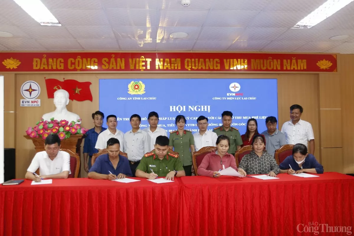 Cụ thể, thực hiện quy chế phối hợp đảm bảo an ninh trật tự, an toàn lưới điện giữa PC Lai Châu và Công an tỉnh Lai Châu giai đoạn 2021-2025; kế hoạch tổ chức tuyên truyền phổ biến pháp luật và ký cam kết với các cơ sở thu mua phế liệu không thu mua, tiêu thụ vật tư thiết bị điện không rõ nguồn gốc trên địa bàn tỉnh Lai Châu... vào cuối tháng 6/2024, Công an tỉnh và Công ty Điện lực Lai Châu đã phối hợp tổ chức triển khai hội nghị tuyên truyền phổ biến pháp luật và ký cam kết với các chủ cơ sở thu mua phế liệu trên địa bàn tất cả các huyện/thành phố trong tỉnh.