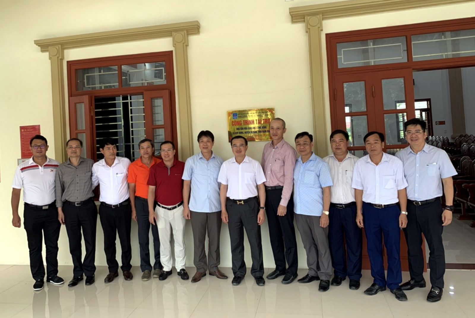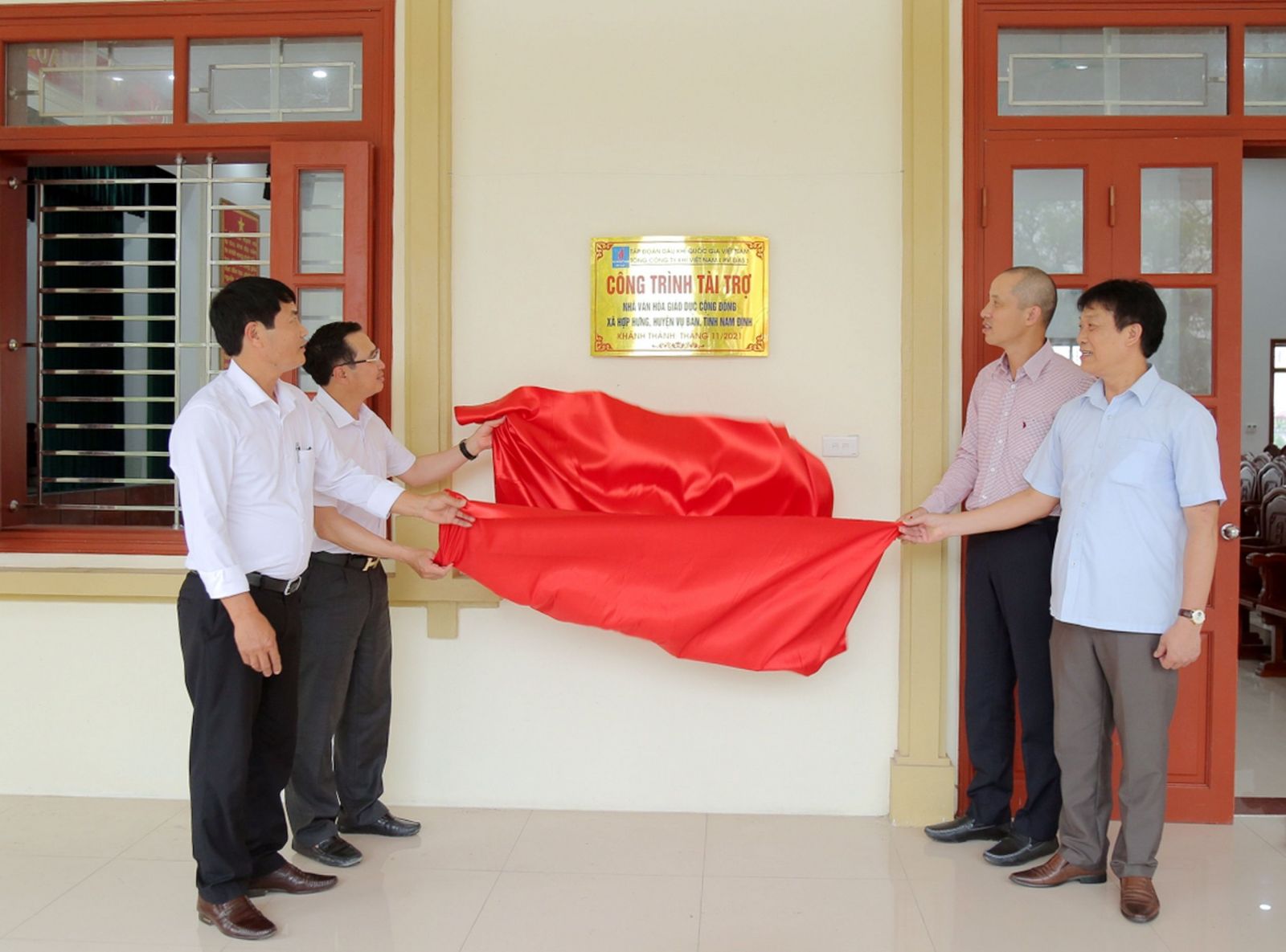 Các vị đại biểu đã thực hiện nghi thức khánh thành và gắn biển chứng thực PV GAS tài trợ cho công trình, khai mở Nhà Văn hóa giáo dục cộng đồng xã Hợp Hưng ngay trong giai đoạn mở đầu Tháng Công nhân 2022.