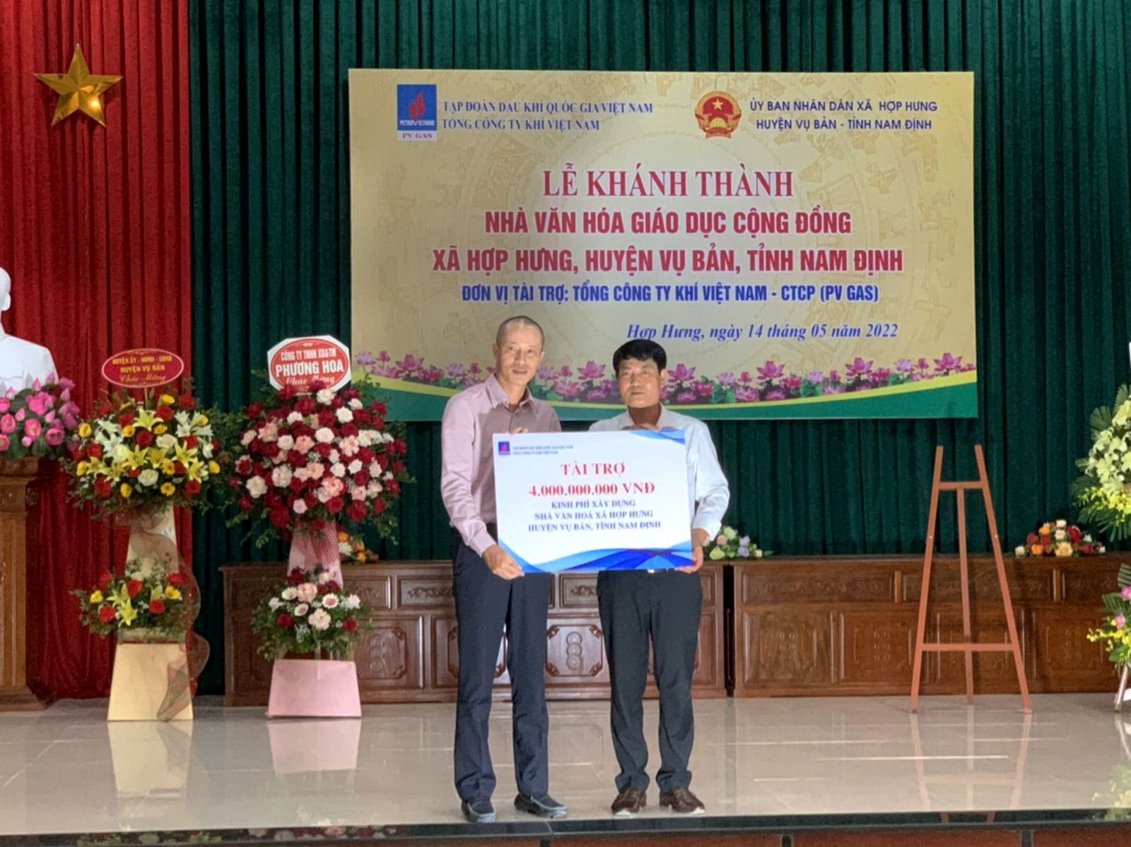 Đại diện lãnh đạo địa phương cũng gửi lời cảm ơn đến lãnh đạo Petrovietnam, PV GAS đã dành sự quan tâm, hỗ trợ cho bà con nhân dân địa phương, đồng thời mong muốn trong thời gian tới các doanh nghiệp dầu khí sẽ tiếp tục quan tâm, hỗ trợ xã Hợp Hưng, huyện Vụ Bản và tỉnh Nam Định nói chung.