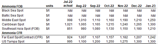 Nguồn CRU: Fertilizer Week – Price Forecasts tháng 8/2022