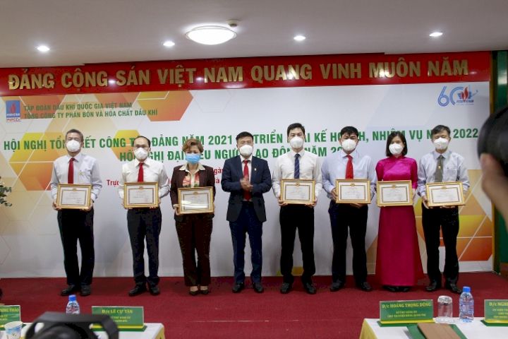 Tại Hội nghị, PVFCCo cũng đã trao Giấy khen của Đảng ủy Tập đoàn cho các tổ chức đảng và đảng viên hoàn thành xuất sắc nhiệm vụ của TCT; Cờ thi đua của Công đoàn Dầu khí Việt Nam cho “Đơn vị xuất sắc trong phong trào thi đua Lao động giỏi và xây dựng tổ chức Công đoàn vững mạnh” nhân dịp kỷ niệm 60 năm Ngày Truyền thống Ngành Dầu khí và 30 năm Ngày thành lập Công đoàn DKVN; Tập thể và người lao động xuất sắc; huy hiệu 40 năm tuổi Đảng và Kỷ niệm chương vì sự nghiệp Tuyên Giáo cho các Đảng viên của Đảng ủy Tổng công ty