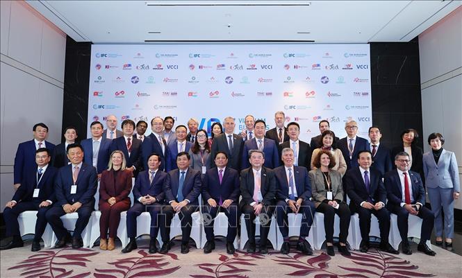 Thủ tướng Phạm Minh Chính với đại biểu các bộ, ngành và tổ chức quốc tế. Ảnh: Dương Giang/TTXVN