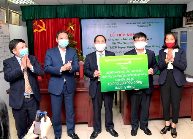 Nhân dịp năm mới 2021, Ngân hàng TMCP Ngoại thương Việt Nam (Vietcombank) vừa trao tặng 10 tỷ đồng cho 20.000 nạn nhân chất độc (NNCĐ) da cam/dioxin trên địa bàn TP. Hà Nội, mỗi suất quà trị giá 500.000 đồng.