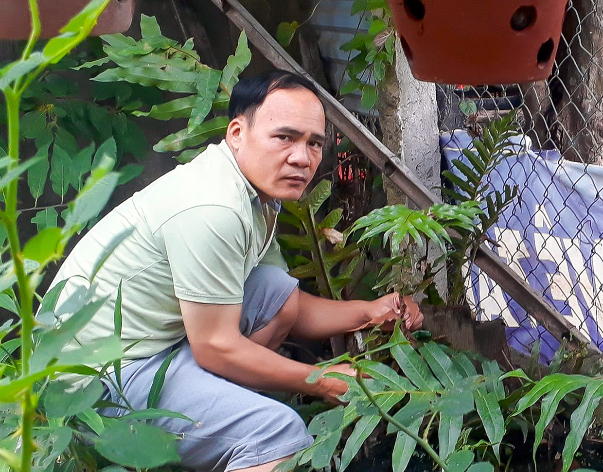 | Thầy giáo Lục Văn Chiến bên vườn ươm giống cây tắc kè đá của gia đình. Ảnh: Mộc Trà |