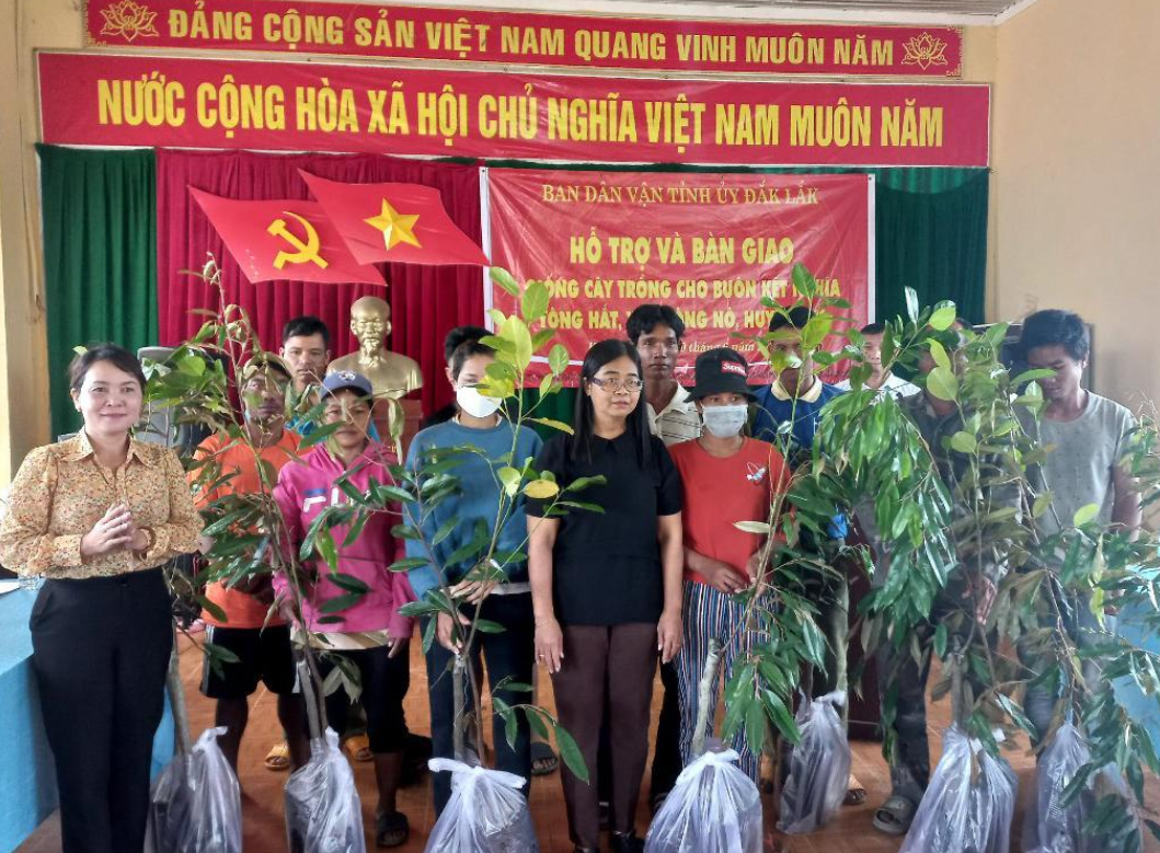 Ban tổ chức đã trao 620 cây giống (310 cây mít thái và 310 cây sầu riêng Dona) cho 52 hộ nghèo và cận nghèo tại buôn Yông Hắt, xã Krông Nô, với tổng trị giá gần 50 triệu đồng.