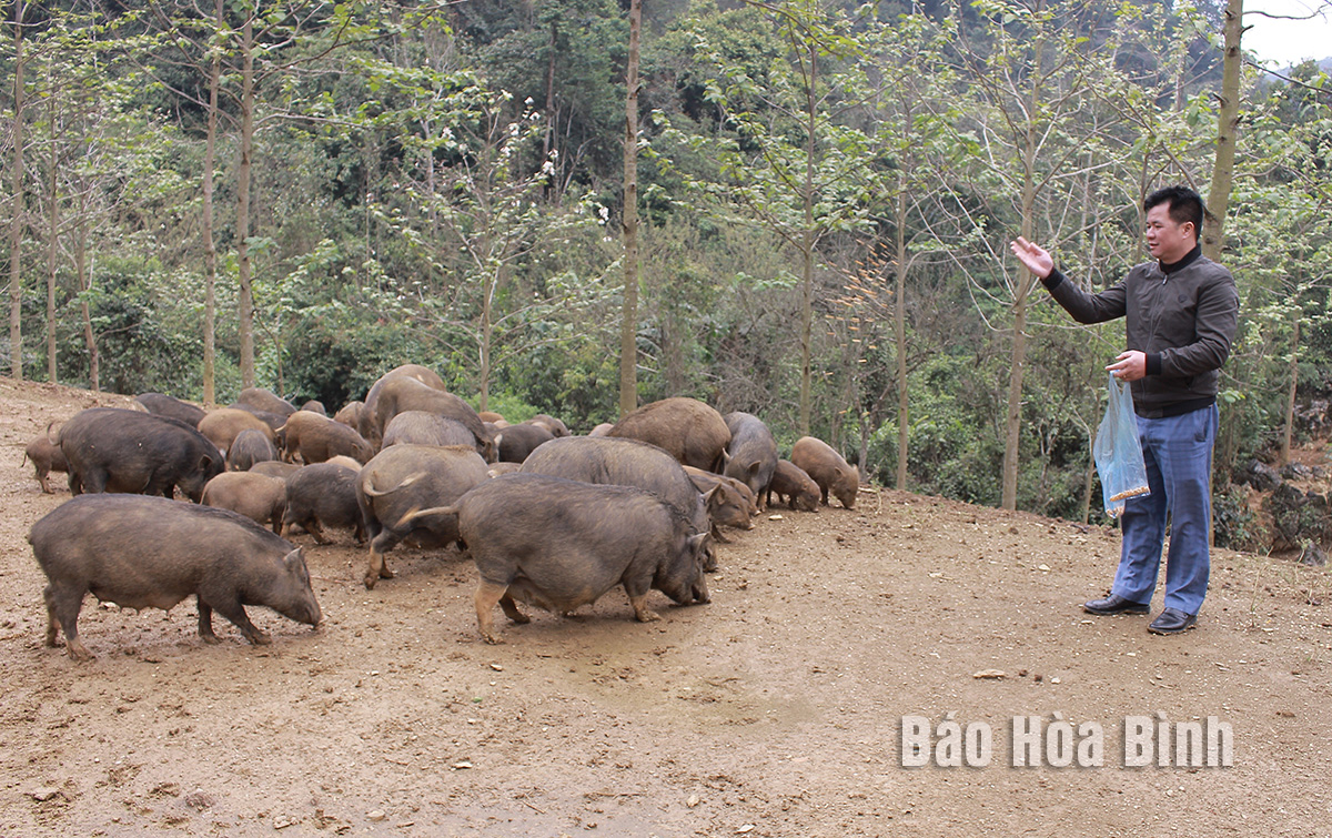 Người dân xóm Bo Trẳm, xã Ngổ Luông (Tân Lạc) phát triển mô hình chăn nuôi lợn bản địa, đem lại hiệu quả kinh tế cao.