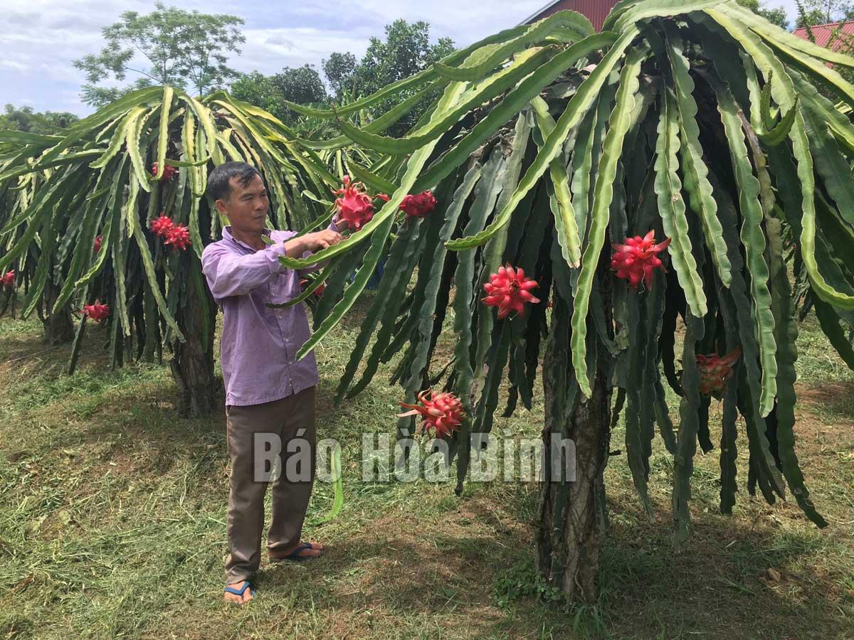 Nông dân thị trấn Ba Hàng Đồi (Lạc Thủy) chăm sóc thanh long ruột đỏ đảm bảo tiêu chuẩn hữu cơ, Viet GAP.