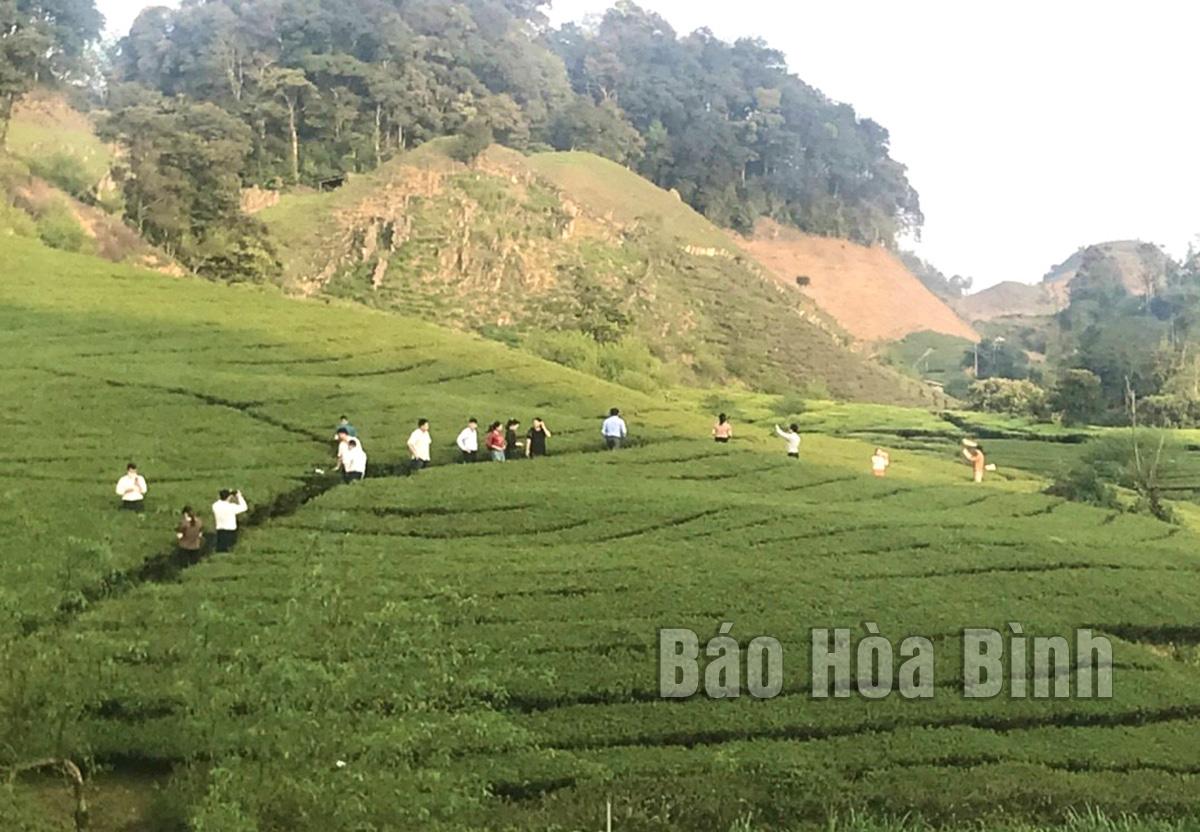 Du khách thăm quan homestay H'Mông và trải nghiệm nông nghiệp tại xóm Chà Đáy, xã Pà Cò (Mai Châu).