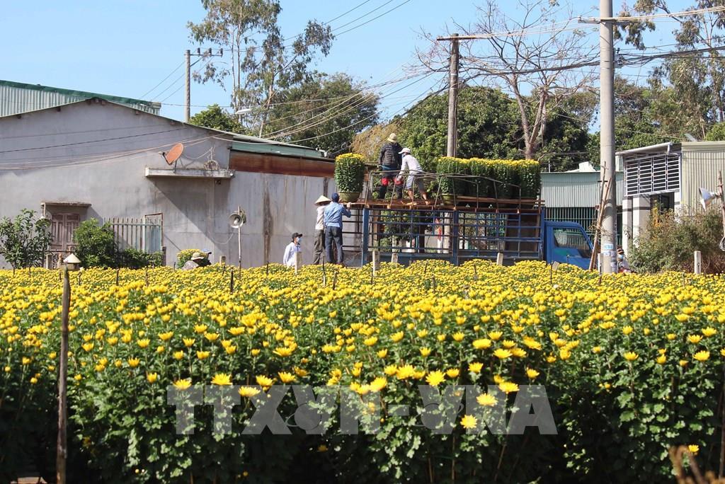 Thị trường hoa cúc trồng phục vụ Tết tại Gia Lai đến thời điểm này vẫn im ắng, rất ít thương lái thu mua. Ảnh: TTXVN |