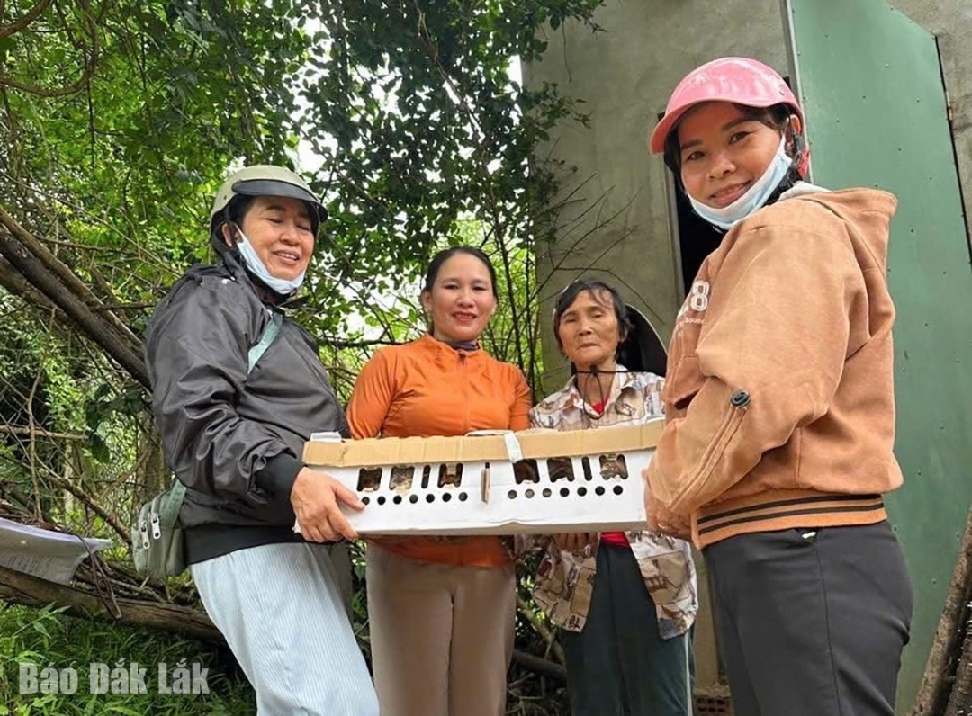 Tại xã Đồng Xuân, mô hình hỗ trợ sinh kế cũng được triển khai linh hoạt với việc trao 400 con gà giống cho hội viên phụ nữ bị thiệt hại nặng do bão lũ. Những đàn gà con được chăm sóc, nuôi dưỡng từng ngày không chỉ mang lại thu nhập trong tương lai, mà còn thắp lên hy vọng về một cuộc sống ổn định hơn.