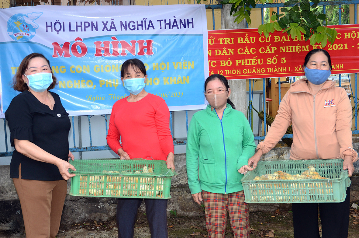 Theo đó, 6 hội viên được Hội LHPN xã Nghĩa Thành trao gà giống (30 con/hộ) để thực hiện thí điểm mô hình chăn nuôi gà ta. Kinh phí trao gà gần 4 triệu đồng do Hội LHPN xã Nghĩa Thành vận động chị em kinh tế khá giúp chị em khó khăn phát triển kinh kế, vươn lên trong cuộc sống.