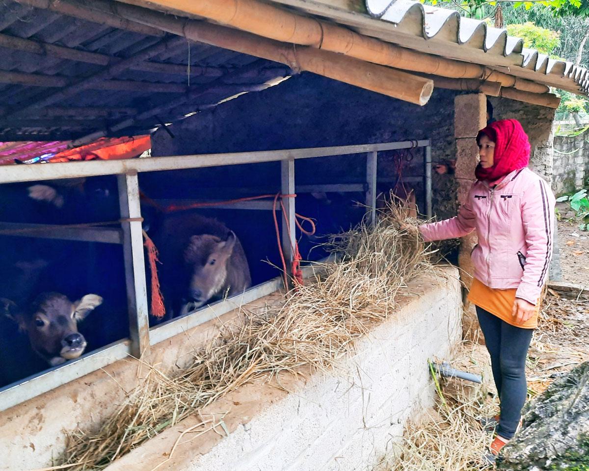 Hộ dân ở xóm Tằm Bát, xã Phú Cường (Tân Lạc) chăn nuôi trâu đem lại thu nhập khá.