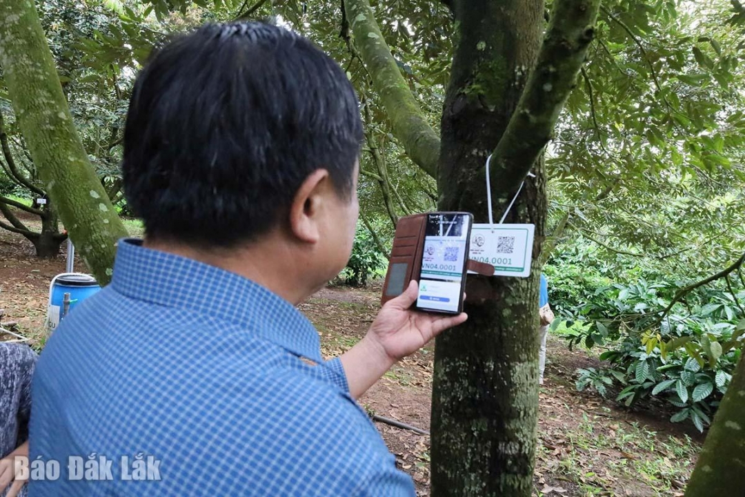 Nếu như trước đây, anh Lê Văn Vinh (xã Krông Pắc) luôn “đầu tắt mặt tối” với 3 ha sầu riêng thì bây giờ anh chỉ cần quản lý và theo dõi tình hình sức khỏe của vườn cây qua màn hình điện thoại. Anh Vinh mô tả: Thay vì phải đi lại kiểm tra liên tục cả vườn, giờ chỉ cần vào app là có thể nắm bắt tình hình của cả vườn cây. Mọi hoạt động chăm sóc đều được ghi lại một cách hệ thống, từ việc xịt thuốc, bón phân, cho đến việc đếm sản lượng từng cây, tất cả dữ liệu đều được cập nhật vào "lý lịch" của từng gốc sầu riêng. Việc ứng dụng công nghệ số vào canh tác khiến cách quản lý vườn trở nên khoa học, vừa minh bạch thông tin. Chất lượng sầu riêng được chứng thực bằng một mã QR treo trên từng thân cây, người tiêu dùng và các đối tác có thể truy xuất toàn bộ vòng đời của sản phẩm.