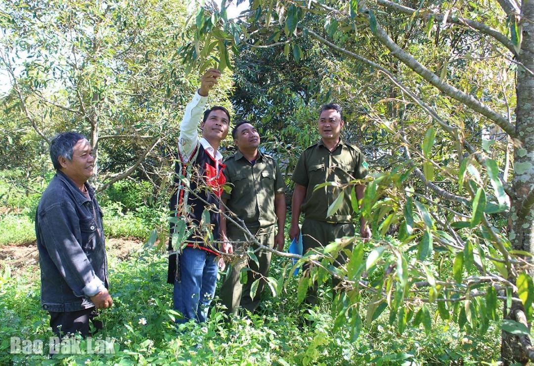 Tổ an ninh buôn Triă, xã Ea Tul trao đổi, hướng dẫn người dân bảo vệ vụ mùa, khu vực sản xuất. |