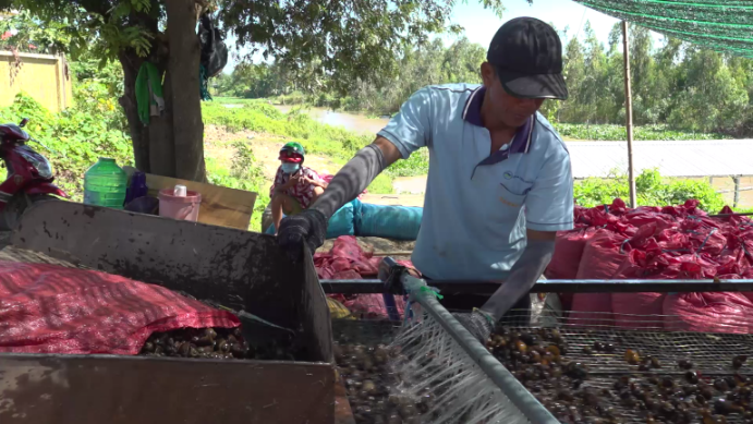 Nông dân bắt ốc, sàng lọc, phân loại ốc trước khi bán cho thương lái.