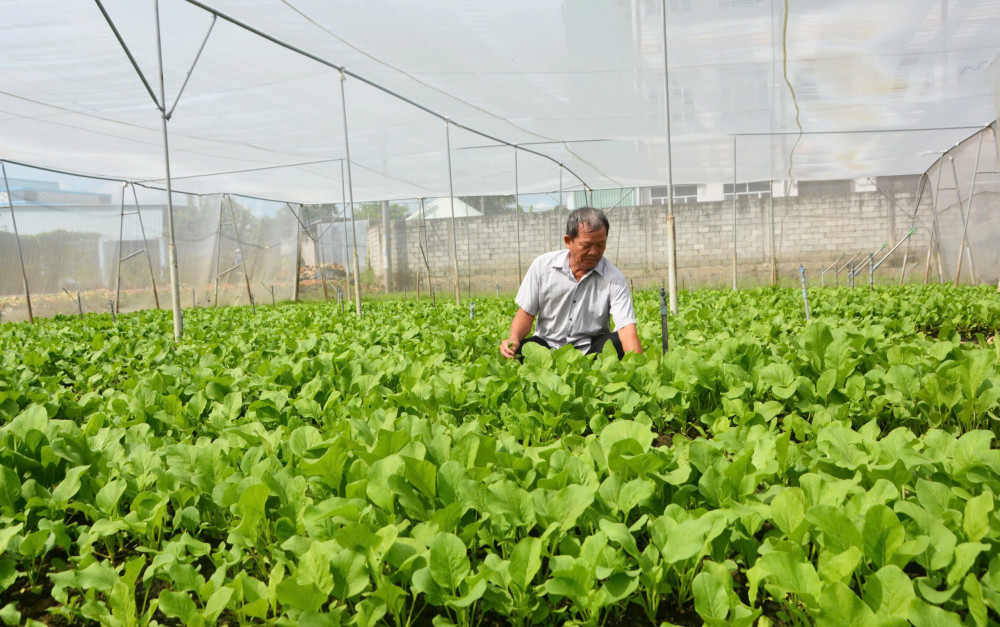 Nhiều năm nay, ông Đặng Văn Tổng (ngụ xã Phước Lý) trồng rau ứng dụng công nghệ cao, phát triển kinh tế