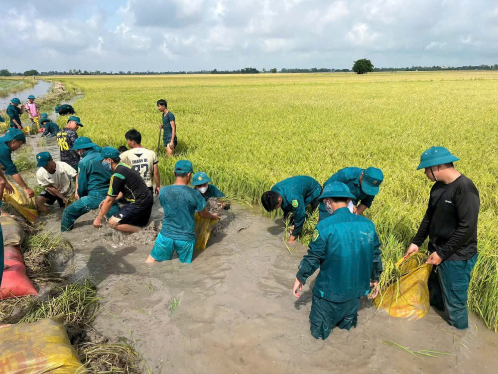 Địa phương cử lực lượng giúp dân gia cố đê bao bảo vệ lúa