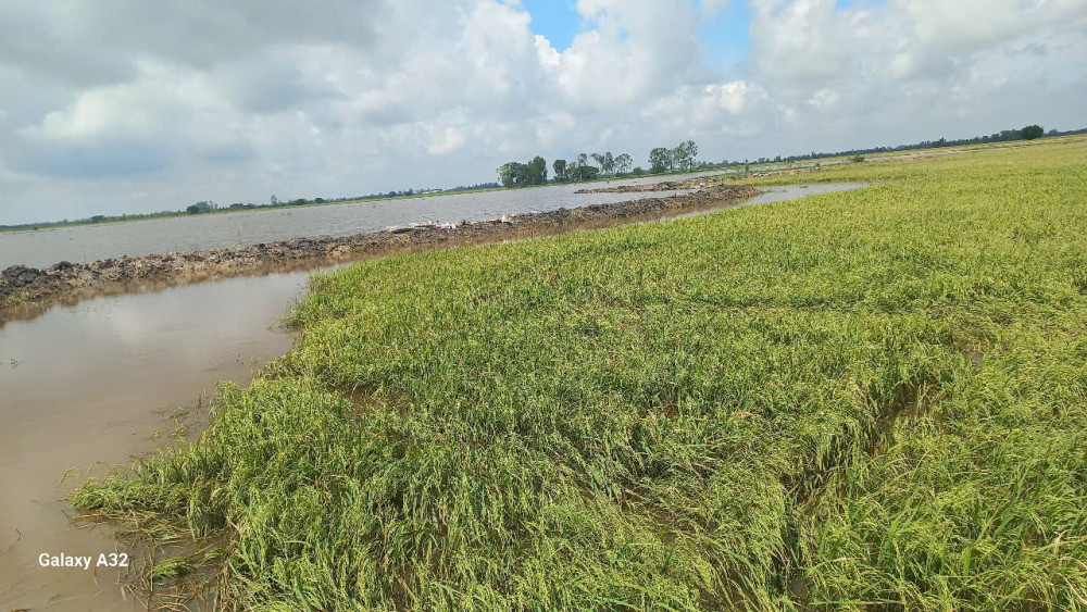 Mực nước ở mức cao làm cho khoảng 330ha lúa bị ngập cục bộ và hơn 40ha lúa bị đe dọa. Hiện nông dân gia cố bờ bao, bơm rút nước ra để cứu lúa.