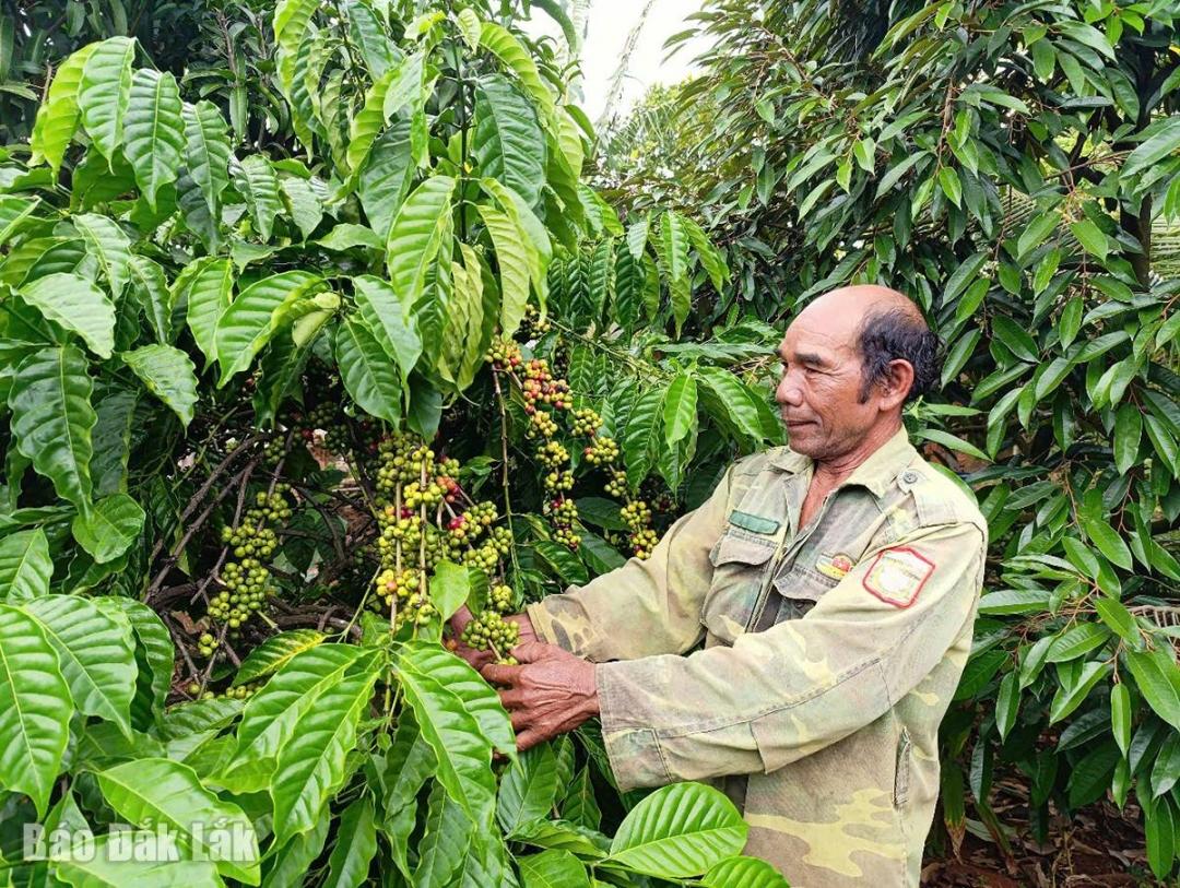 Không chỉ tích cực với các hoạt động của buôn, ông còn là hội viên nông dân sản xuất giỏi. Hiện gia đình ông có gần 1 ha cà phê trồng xen sầu riêng. Trung bình gia đình ông thu được khoảng hơn gần 2 tấn cà phê nhân, còn sầu riêng mới cho thu bói. Thêm vào đó, gia đình ông chăn nuôi thêm 20 con bò, trâu. Không chỉ cần cù lao động, sản xuất, ông còn tích cực hỗ trợ người dân về kỹ thuật trồng trọt, chăn nuôi; động viên người dân chăm chỉ sản xuất, vươn lên thoát nghèo.