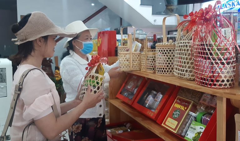 Chị Lê Thị Hằng, chủ cửa hàng đặc sản ở phường 7, TP Tuy Hòa, cho hay: Để giúp khách hàng chọn giỏ quà Tết ý nghĩa, sang trọng, tôi đã đặt làm nhiều mẫu giỏ quà bằng tre đan tay. Sử dụng mẫu giỏ này, chúng tôi không phải bao gói như các giỏ quà khác để giảm lượng rác thải nhựa và chỉ trang trí thêm một số vật dụng như hoa, thiệp… Ngoài ra, chúng tôi còn thiết kế hộp quà bằng chất liệu giấy cao cấp.