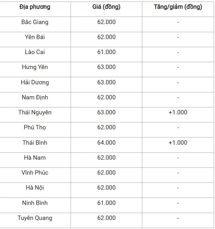 Các địa phương còn lại ghi nhận giá heo hơi ở mức 62.000 đồng/kg.
