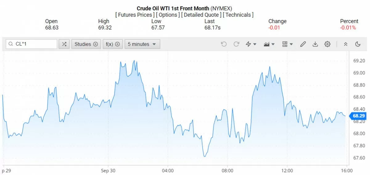 Giá dầu tương lai West Texas Intermediate (WTI) giảm một xu và đóng cửa ở mức 68,17 đô la. Giá chuẩn của Hoa Kỳ đã giảm 7% trong tháng 9, mức giảm hàng tháng lớn nhất kể từ tháng 10 năm 2023 và giảm 16% trong quý giảm lớn nhất kể từ quý 3 năm 2023.