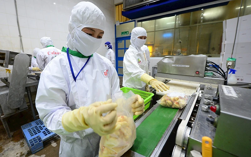 Đóng gói thủy sản chế biến tại Công ty CP Thủy sản Cafatex (Hậu Giang). (Ảnh TUẤN ANH)