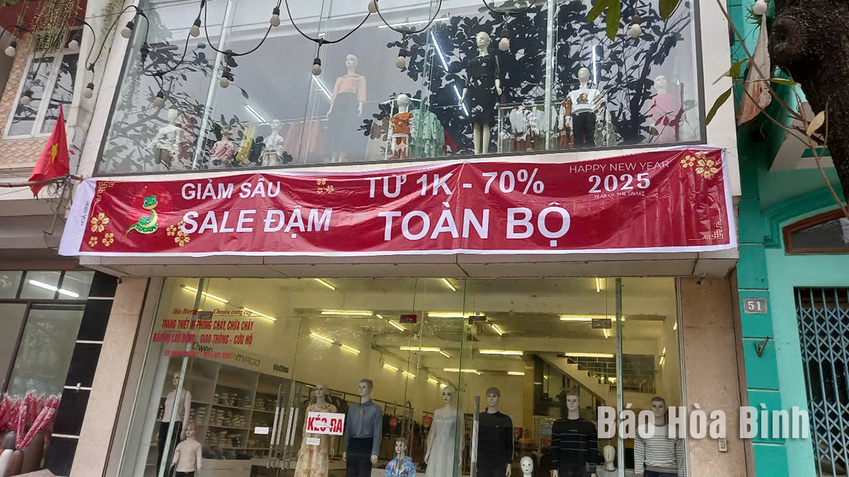 Khuyến mại giảm giá cuối năm là cơ hội để cửa hàng giải quyết hàng tồn kho, khách hàng được sử dụng sản phẩm chất lượng, giá hợp lý. Ảnh chụp tại đường Chi Lăng (TP Hòa Bình).