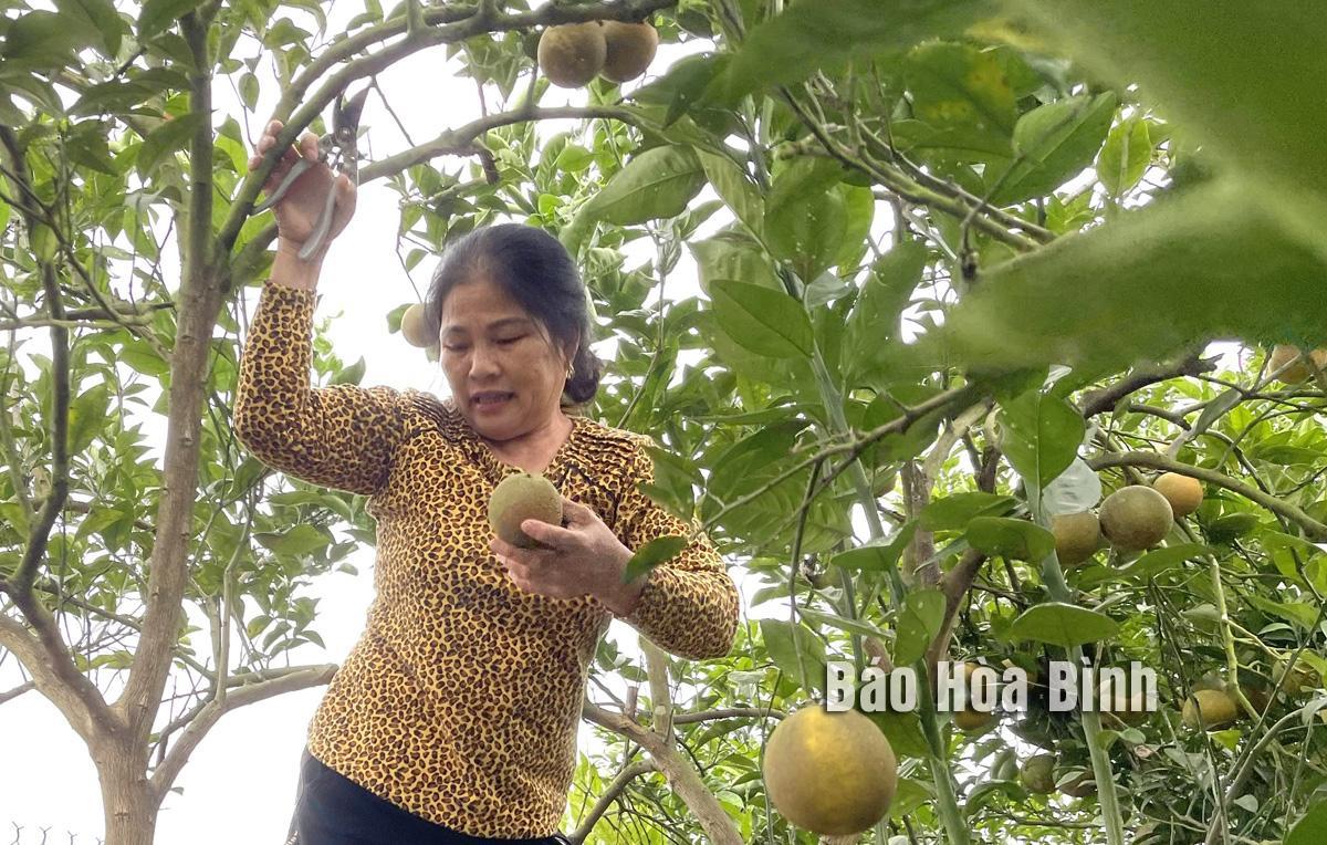 Nông dân thị trấn Cao Phong thu hoạch cam V2