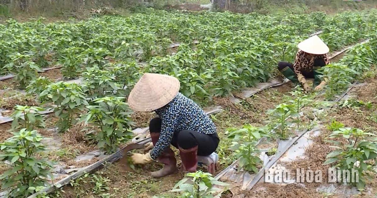 Nông dân phường Dân Chủ (TP Hòa Bình) chăm sóc diện tích trồng ớt chỉ địa nhằm kịp thời đáp ứng đơn hàng của đối tác.