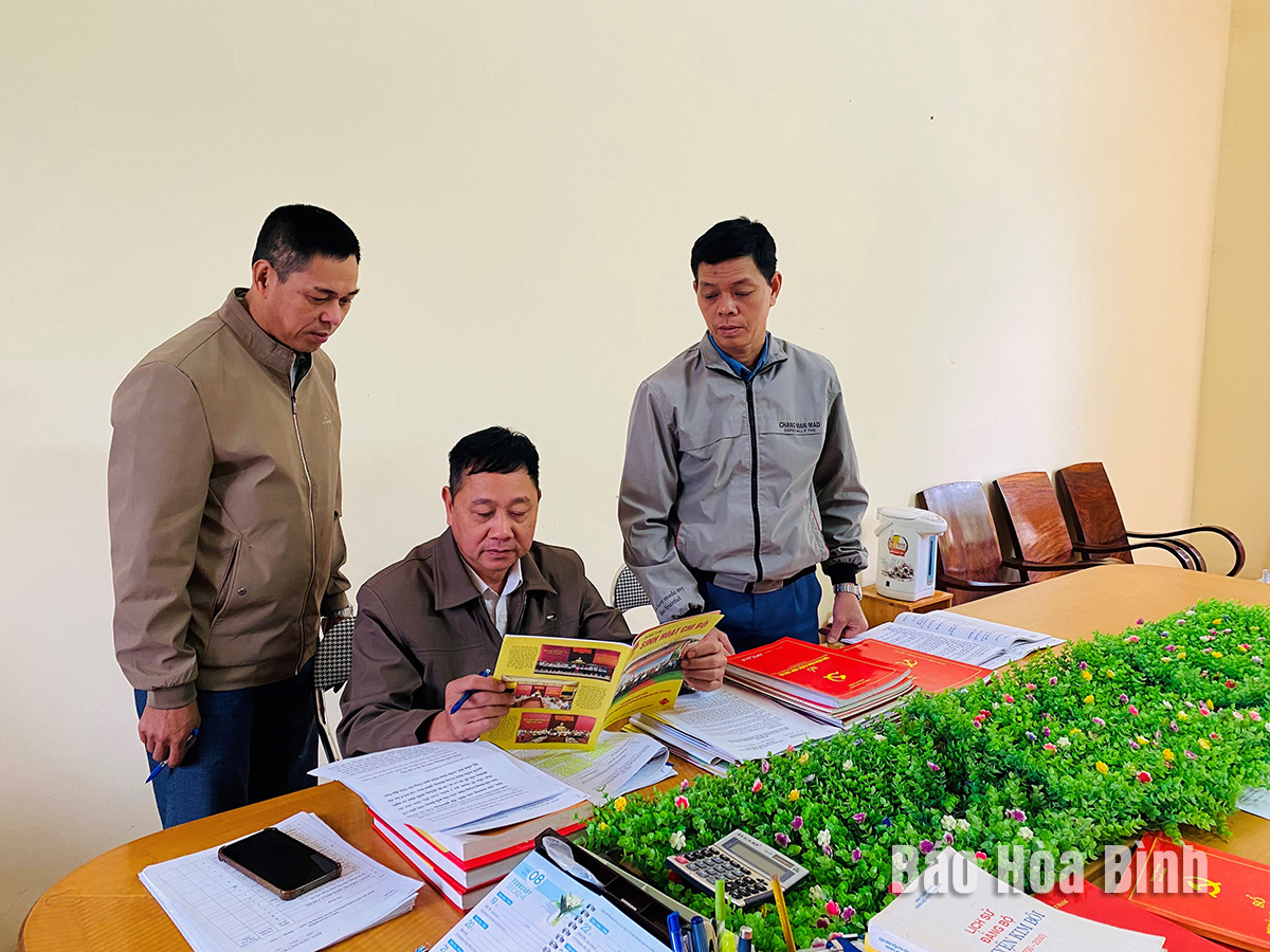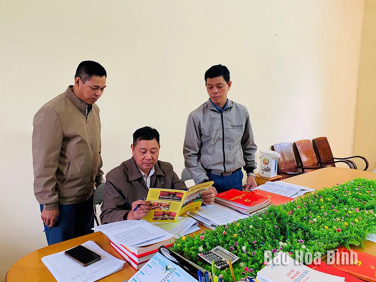 Ban Chi ủy chi bộ xóm Bôi Câu, xã Kim Bôi (Kim Bôi) hội ý chuẩn bị cho sinh hoạt định kỳ hàng tháng.