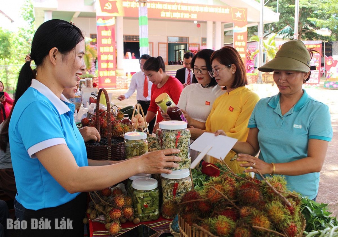 | Sản phẩm từ mô hình phụ nữ Ea Kiết khởi nghiệp được trưng bày, giới thiệu tại các chương trình tổ chức trên địa bàn xã. |