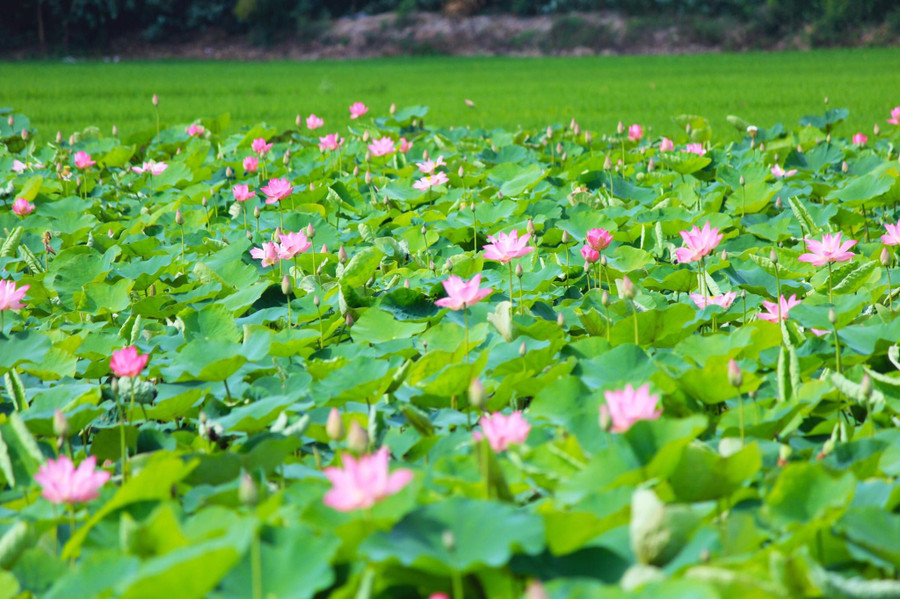 | Cánh đồng hoa sen tại Đồng Tháp, một trong những nét đẹp dân dã thu hút du khách. |