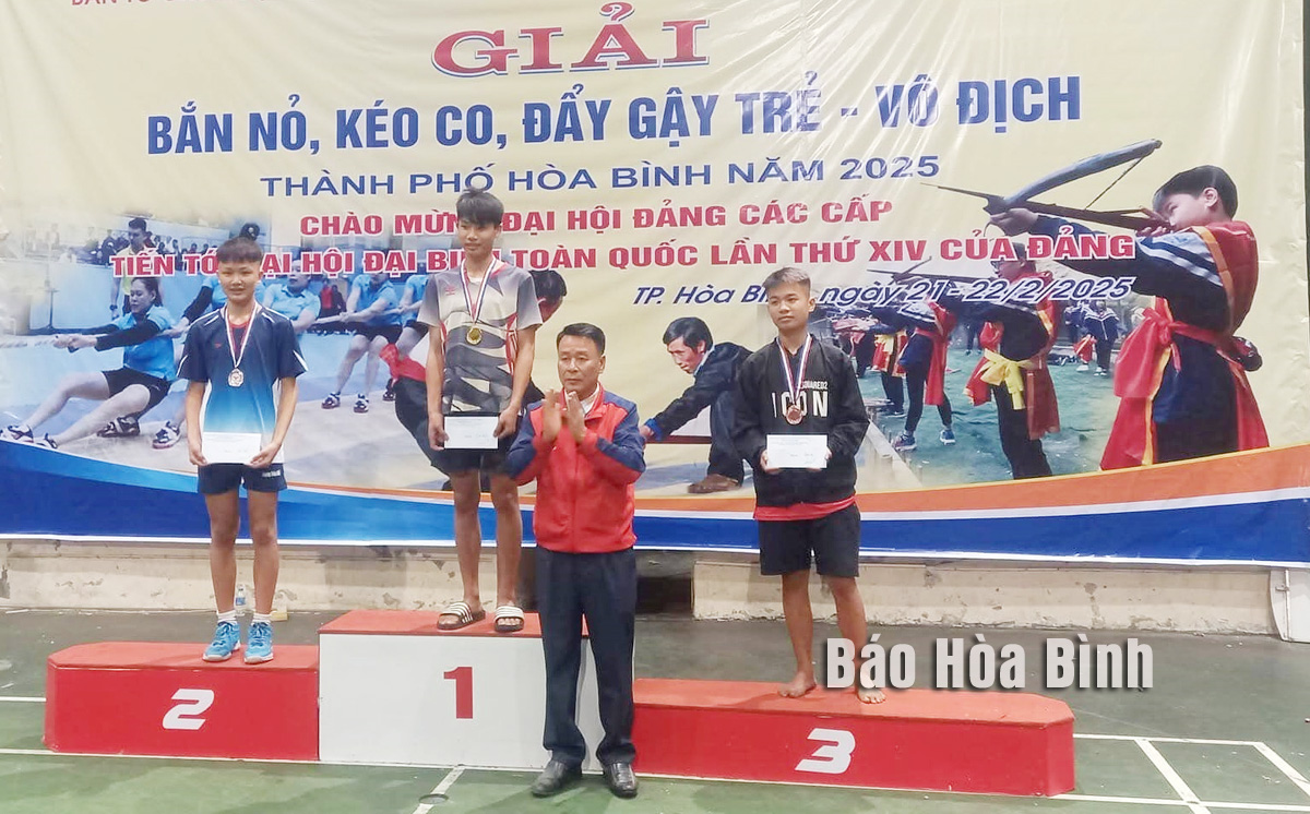 Tại Nhà thi đấu thể dục thể thao tỉnh, Ban Tổ chức Đại hội Thể dục thể thao thành phố Hoà Bình lần thứ VIII năm 2025 vừa tổ chức Giải bắn nỏ, kéo co, đẩy gậy trẻ - vô địch thành phố năm 2025.