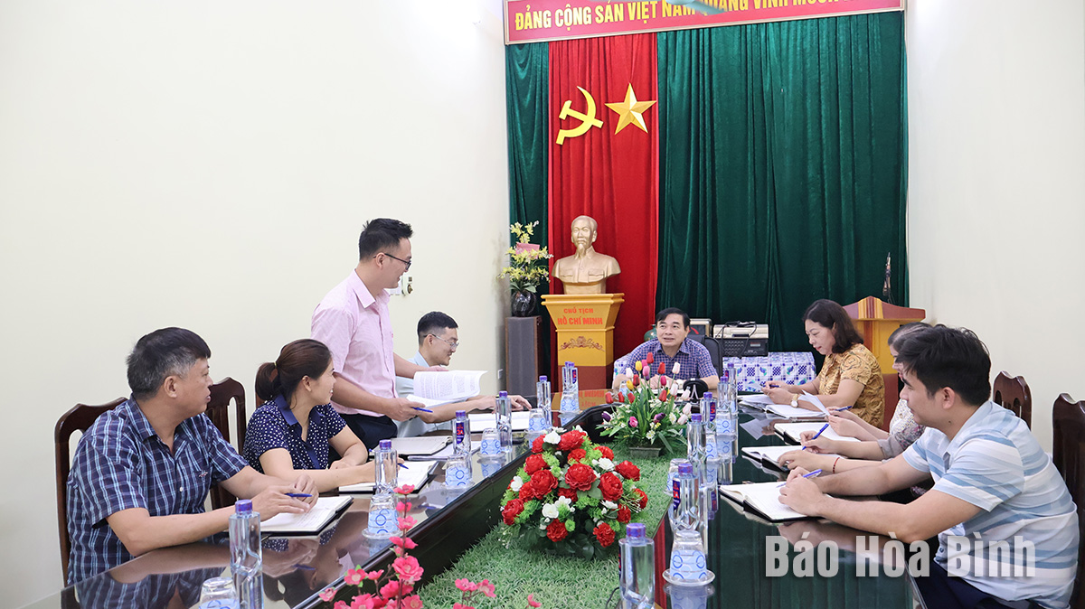 Chi bộ Ngân hàng Chính sách xã hội huyện Kim Bôi họp lấy ý kiến đảng viên về thực hiện mô hình chi bộ kiểu mẫu.