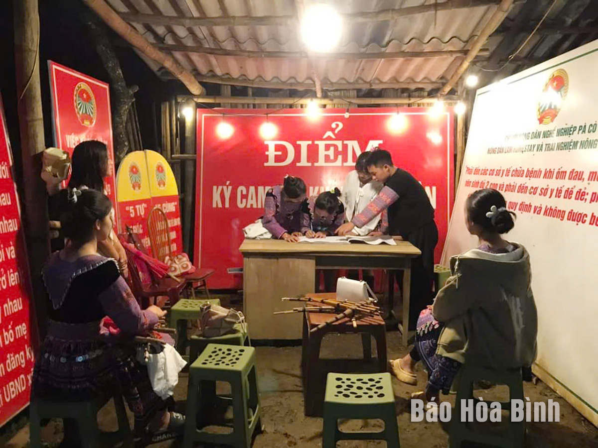 Xã Pà Cò (Mai Châu) tổ chức cho thanh niên nam, nữ trong xã ký cam kết không tảo hôn.