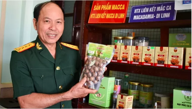 Tôi gặp ông Lê Văn Trường - Giám đốc Hợp tác xã Liên kết Mắc ca Di Linh (huyện Di Linh, tỉnh Lâm Đồng) cũng là một cựu chiến binh tại một hội chợ xúc tiến thương mại tại Hà Nội. Gian hàng trưng bày sản phẩm mắc ca của hợp tác xã thu hút sự quan tâm của người tiêu dùng thủ đô.