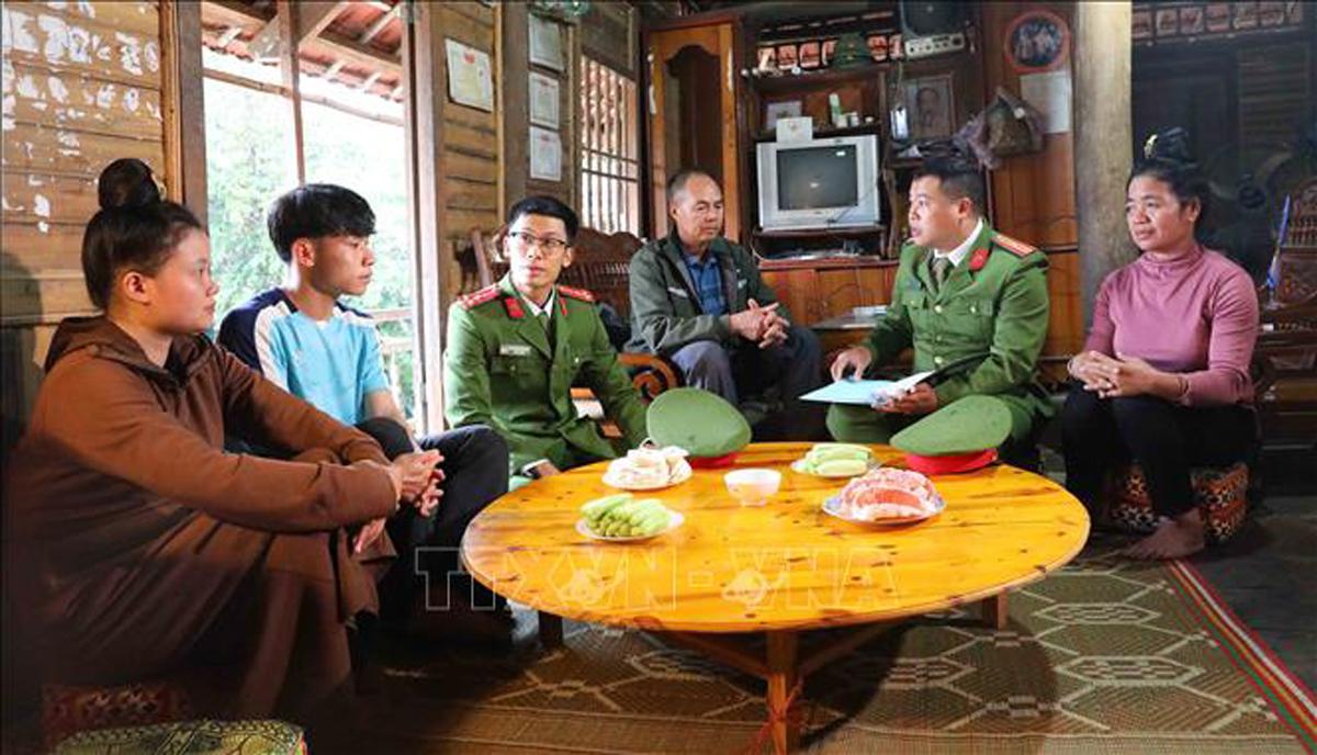 Lực lượng Công an tỉnh Điện Biên đến tận từng hộ gia đình để tuyên truyền giáo dục pháp luật trên địa bàn xã Thanh Hưng, huyện Điện Biên.