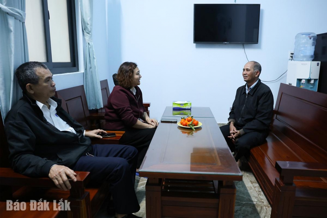 | Mục sư Y Sen Niê (bìa phải) thường xuyên trao đổi với chính quyền địa phương về các nguyện vọng của người dân vùng có đạo. |