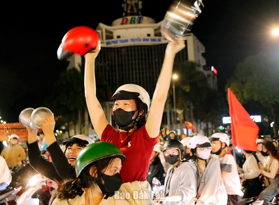 Tối 18/12, sau 120 phút thi đấu, đội tuyển U22 Việt Nam đã có màn lội ngược dòng đầy cảm xúc khi thắng ngược Thái Lan 3 - 2 sau khi bị dẫn trước 2 - 0 ở hiệp 1, qua đó giành HCV môn bóng đá nam tại SEA Games 33. Ngay sau tiếng còi mãn cuộc, hàng ngàn người dân tỉnh Đắk Lắk đã đổ ra đường ăn mừng chức vô địch đầy cảm xúc của các học trò huấn luyện viên Kim Sang-sik.